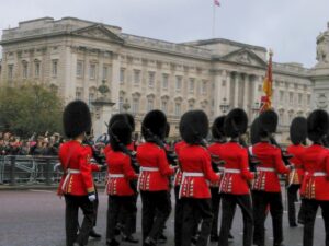 みんな同じ格好をしていて、みんな同じ位置まで足を上げて行進している姿。